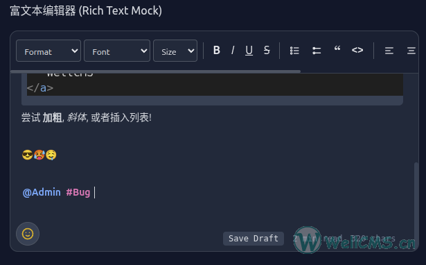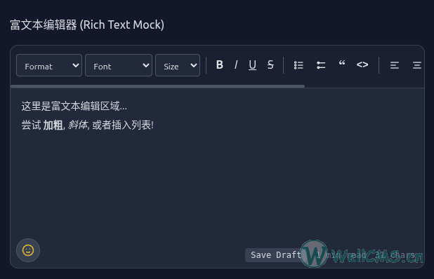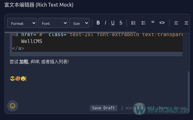 WellRTE 是一款基于原生 JavaScript (Vanilla JS) 和 Tailwind CSS 构建的现代化富文本编辑器。它旨在提供类似 Notion 的流畅写作体验,同时保持极轻量级的体积和高性能。它内置了丰富的 Markdown 支持、社交化功能(提及、话题)、以及针对移动端深度优化的交互体验。